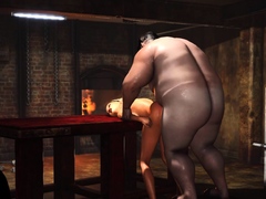 Hardcore in basement. Fat man fucks hard a sexy blonde slave