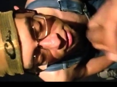 Sucking older chubby cums in my mouth.